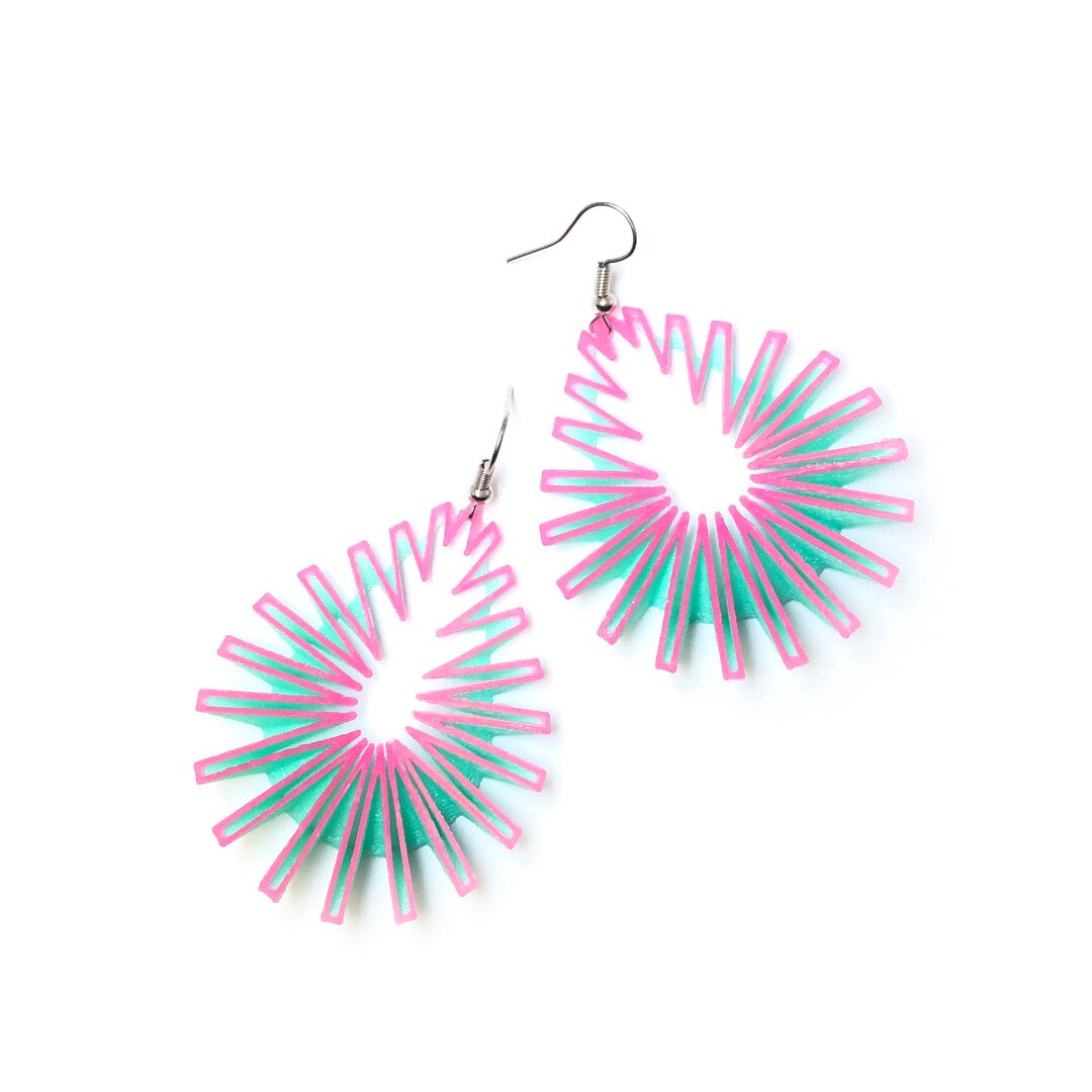 3D Printed Pink Drop Earrings by Rentaro Nishimura