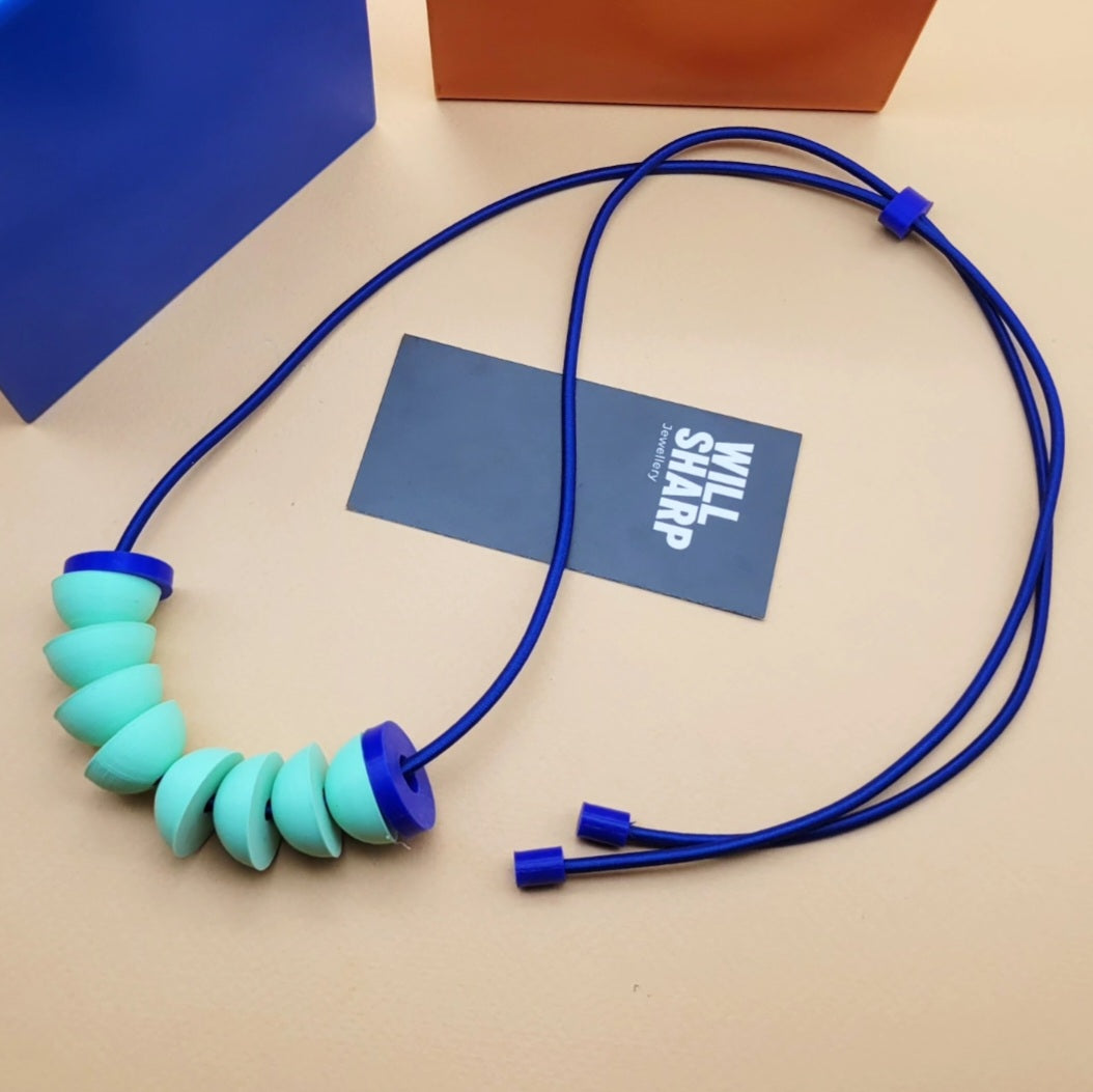 A large 3D printed plant based PLA necklace with stopper, allowing the length to be adjusted.