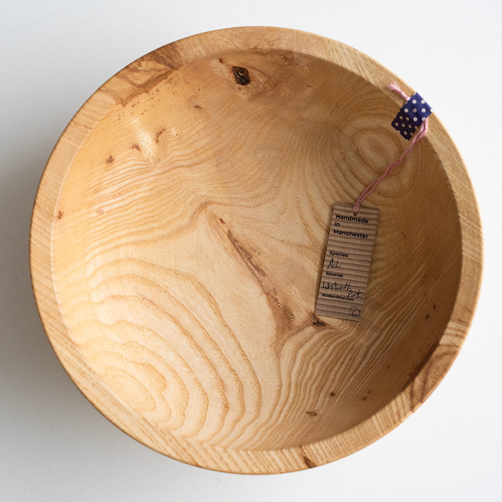 Beautifully handmade wooden bowls with carved rims in two sizes, sourced sustainably from Ash trees in our very own Whitworth Park.