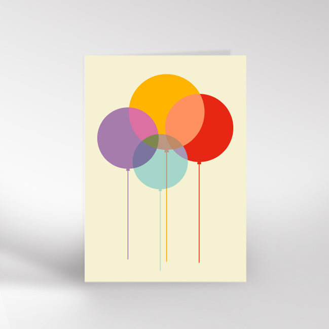 Balloons Card by Dicky Bird, beautifully printed on a heavy matte paper stock with a brown Kraft envelope.
